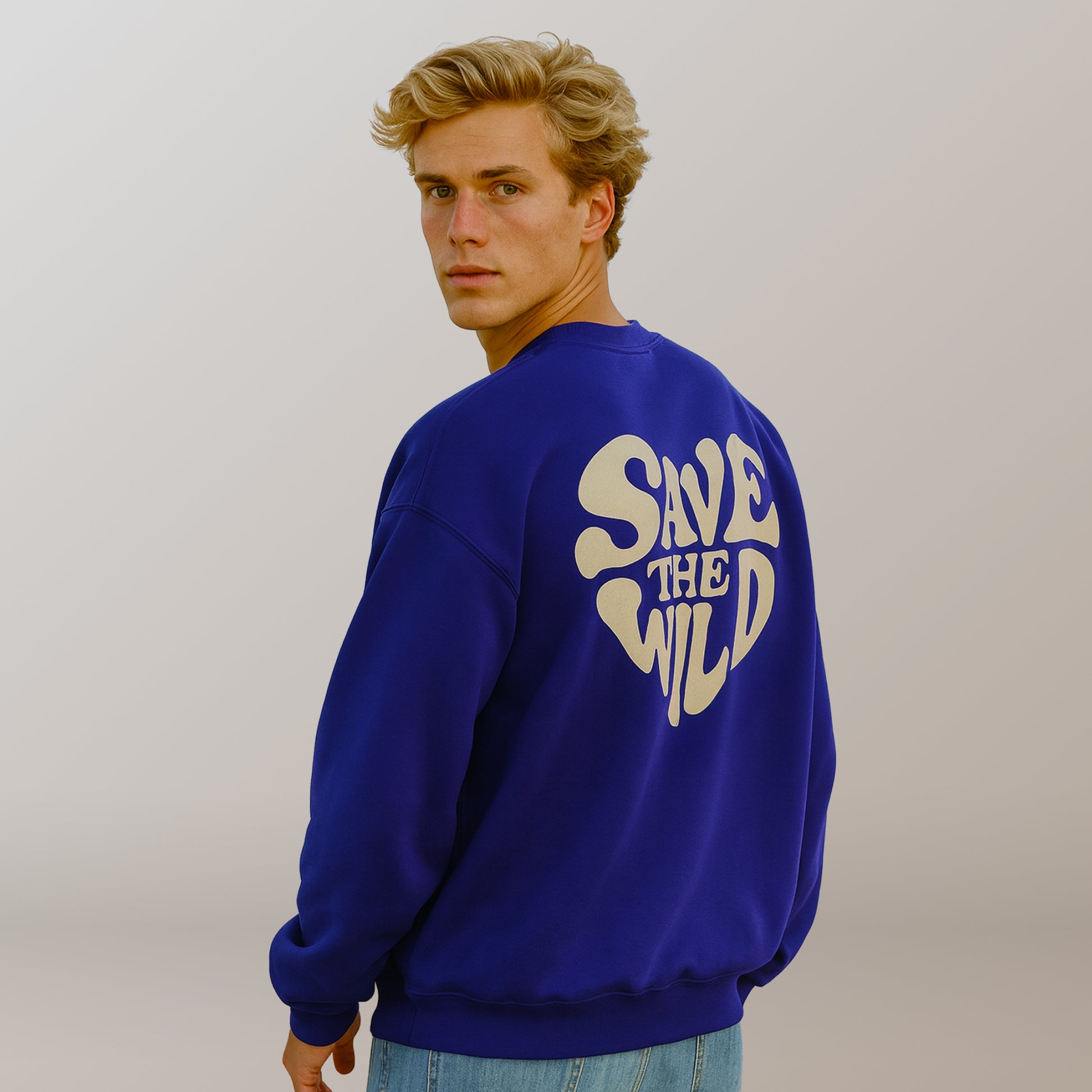 On the back: A bold "savethewild" print in a beige heart shape.